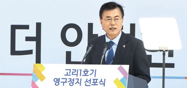 2017년 6월 19일 부산 기장군 고리원자력본부에서 열린 고리 1호기 영구정지 선포식에서 문재인 대통령이 연설하고 있다. 이날 문 대통령은“원전 정책을 전면적으로 재검토해 원전 중심의 발전정책을 폐기하고 탈핵 시대로 가겠다”며 탈원전 정책을 공식화했다. /조선일보DB