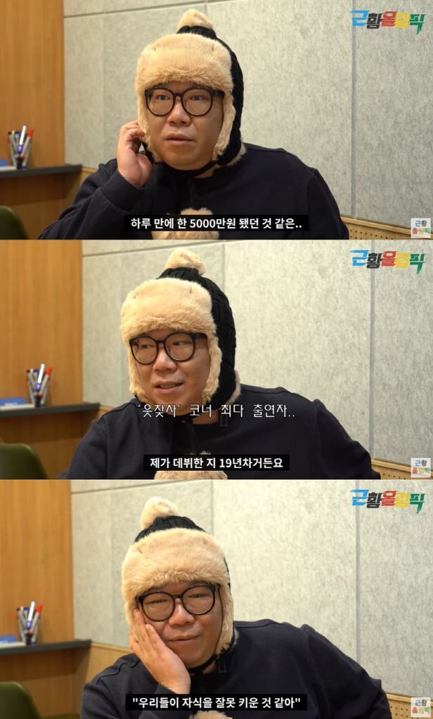 이 영상의 주인공은 2003년 SBS 7기 공채 개그맨으로 데뷔한 권성호. '웃찾사'에서 "귓밥 봐라", "그런 거야" 등의 유행어를 남기며 '웃찾사'의 전성기를 이끈 주역 중 한명이다. 권성호는 그 시절 최고 수입에 대해 묻자 "출연료 포함해서 하루에 5000만 원을 번 적이 있다"라고 말해 놀라움을 안겼다.