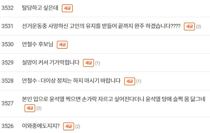 이 밖에도 "이준석이 당신을 그런 취급한 이유를 이제야 이해했다", "당신은 그런 대접을 받을 자격이 충분하다", "중도를 말하면서 철학도 없이 오락가락한다"는 등 안 후보를 향한 분노 섞인 목소리가 빗발치고 있다.