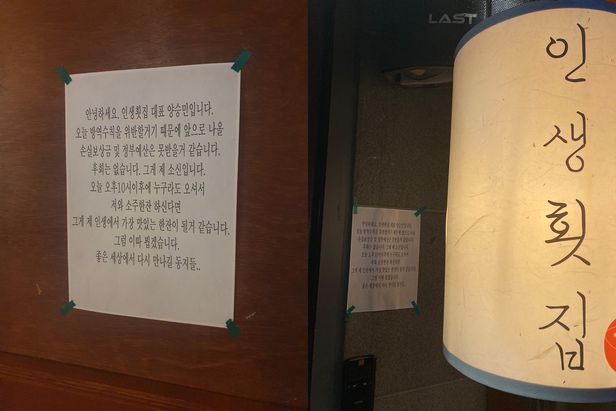 인생횟집 입구에 붙은 사장의 편지 /최훈민 기자