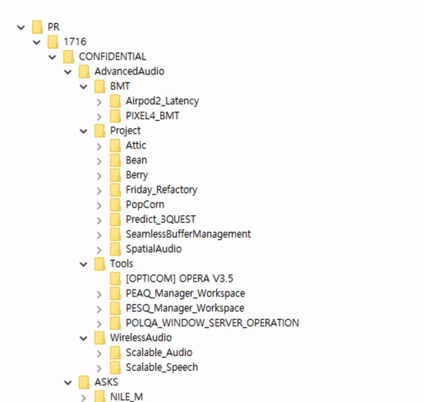 랩서스가 유출한 갤럭시 관련 소스코드가 담긴 폴더들(이미지=지디넷코리아)