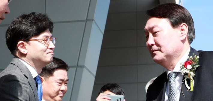 한동훈 검사장(왼쪽)과 윤석열 대통령 당선인(오른쪽). 연합뉴스