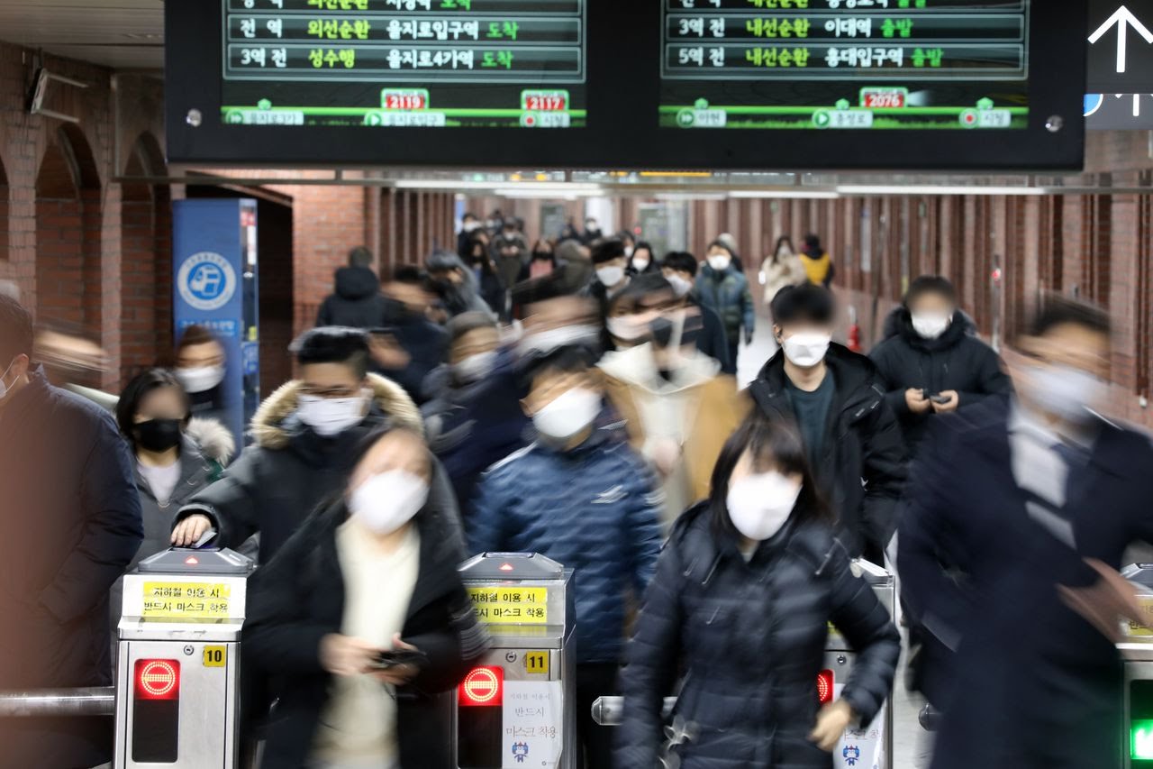 서울 지하철 시청역에서 마스크를 착용한 시민들이 출근길 발걸음을 재촉하고 있다./뉴스1