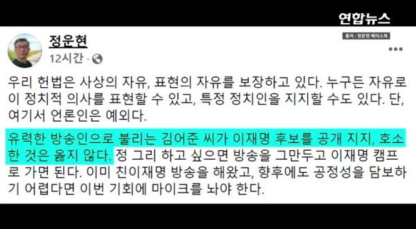 마음은 이해한다. 그래도 공정하게 했어야 한다. 단순 유비튜브만 했다면 좀 피해갈 수 있었을 것이다. 특정 정당, 후보에게만 구애를 보내는 라디오 시사프로를 진행하고 있으니 문제다.