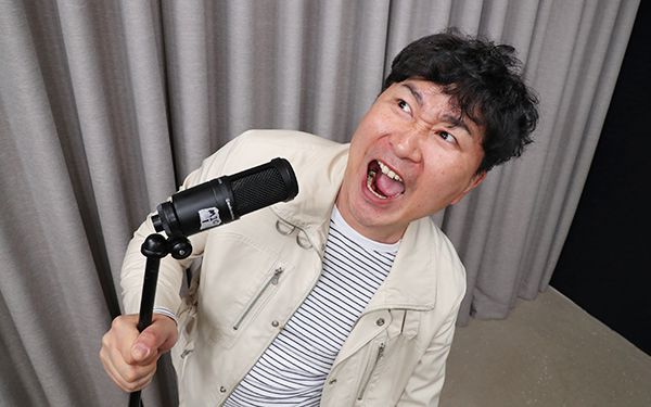 정치 유튜버로 변신한 개그맨 최국이 방송용 마이크를 들고 절규하는 듯한 모습으로 특유의 화난 표정을 짓고 있다. /남강호 기자