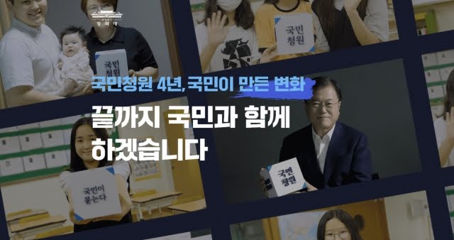 국민청원은 임종석 전 청와대 비서실장의 제안으로 미국 백악관의 국민정책참여플랫폼 ‘위더피플’을 참조해 개설됐다. 지난해 8월 19일에는 국민청원 도입 4주년을 맞아 문 대통령이 취임 후 첫 답변자로 직접 나서기도 했다. 당시 문 대통령은 “국민과의 소통이란 측면에서 ‘국민청원’은 우리 정부의 상징”이라며 애정을 드러냈다. 그러면서 “설령 해결해주지 못 해주더라도 국민이 어디든 호소할 곳이 있어야 한다”고 개설 취지를 강조했다.