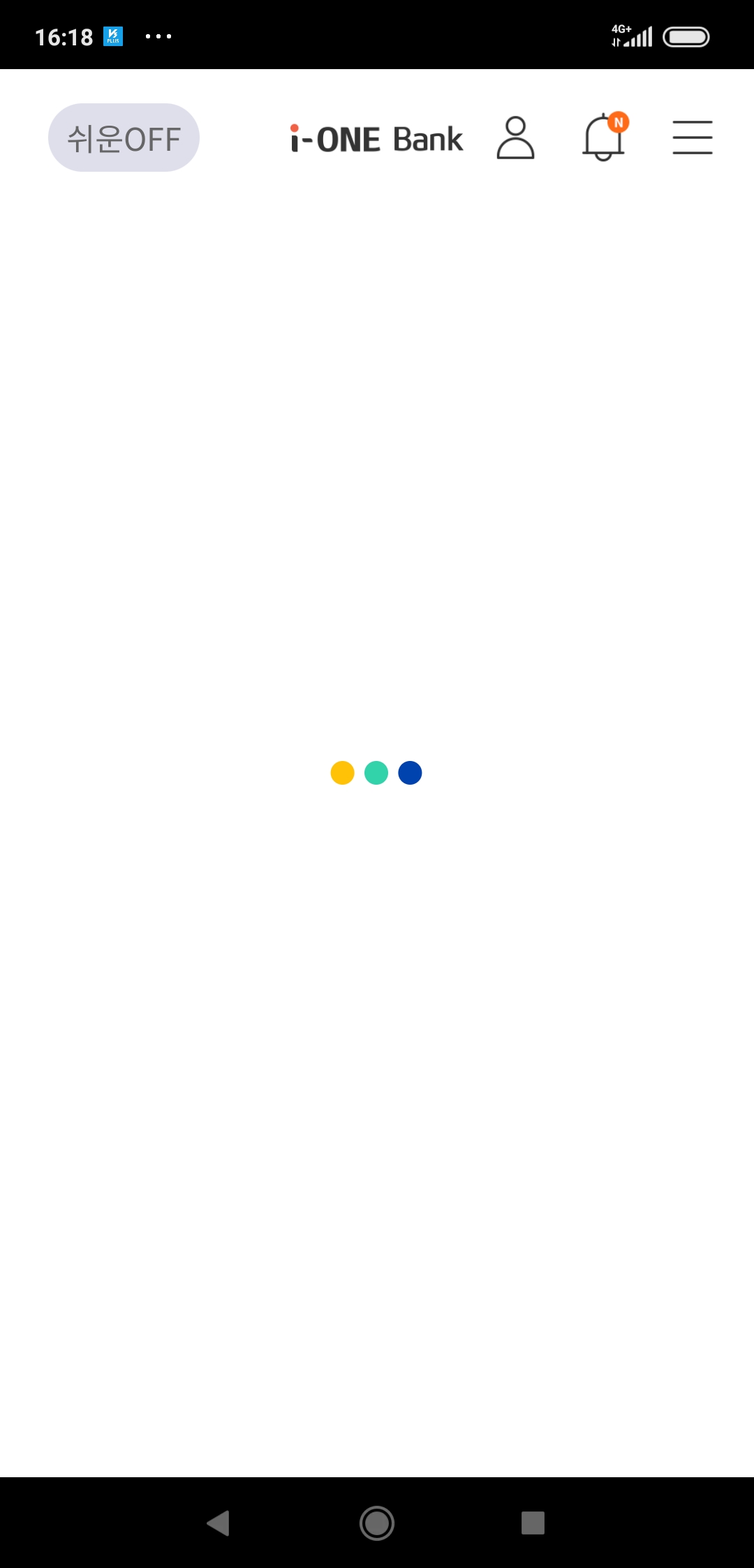 적금을 신규로 가입하려고 앱을 실행했더니 계속 아무것도 보이지 않아서, 핸드폰이 잘못됐나 싶어서 다른 걸 해보면 정상이어서 혹시나 하고 홈페이지를 접속해 봤더니 역시나 안된다.