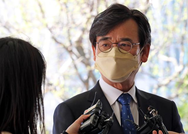 유시민 전 노무현재단 이사장이 7일 서울 마포구 서울서부지법에서 열린 한동훈 명예훼손 공판에 출석하면서 취재진의 질의에 답변하고 있다. 뉴스1