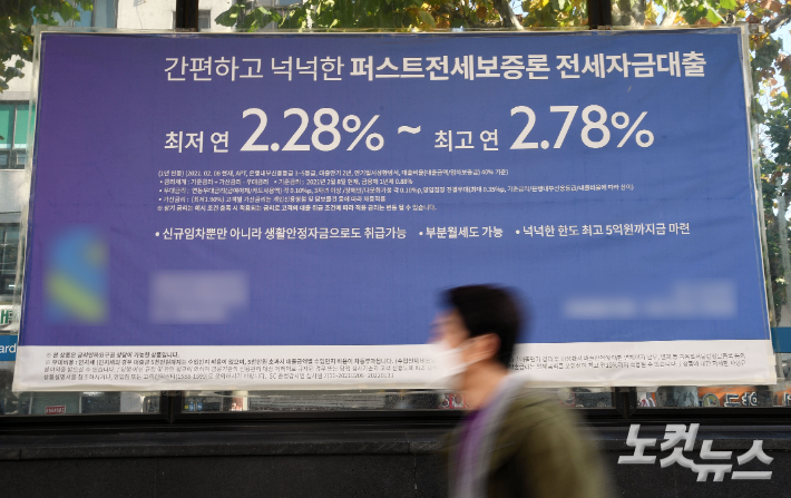 제로금리 시대가 막을 내렸다. 한국은행은 지난 25일 금융통화위원회를 열고 기준금리를 현행 0.75%에서 0.25%p 올려 1.00%로 통화정책을 운용하기로 결정했다. 지난해 3월부터 시작된 '제로(0)' 금리 시대가 1년 8개월 만에 막을 내리게 됐다. 사진은 26일 대출 상품 안내 현수막이 걸린 서울시내 한 은행 모습. 황진환 기자
