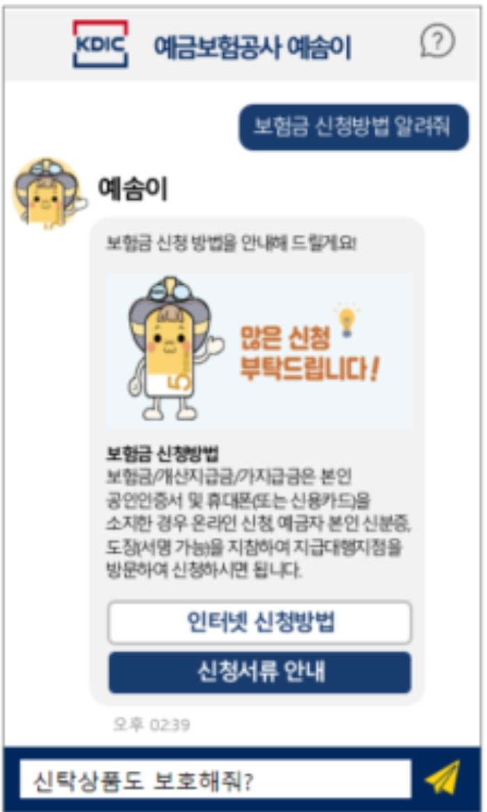 - 모바일 예금보험금 신청, 민원상담 챗봇 등 비대면 서비스 강화