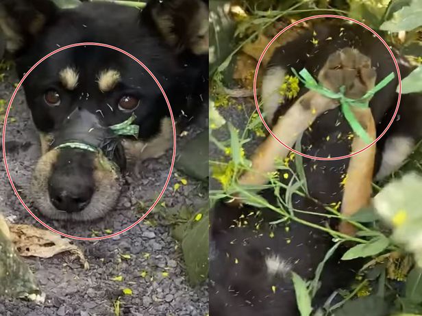 테이프로 입 막고, 등뒤로 발 묶었다... 꽃밭에 파묻힌 강아지