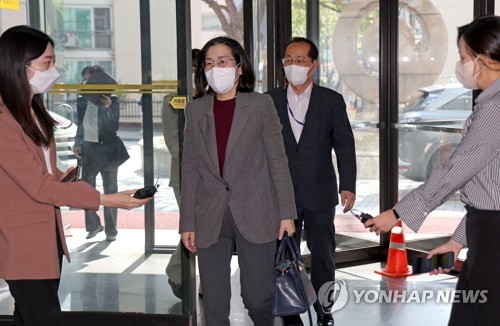 김현숙 여성가족부 장관 후보자가 11일 오전 인사청문회 준비단 사무실이 마련된 서울 서대문구 한국청소년활동진흥원에 출근하고 있다. 연합뉴스