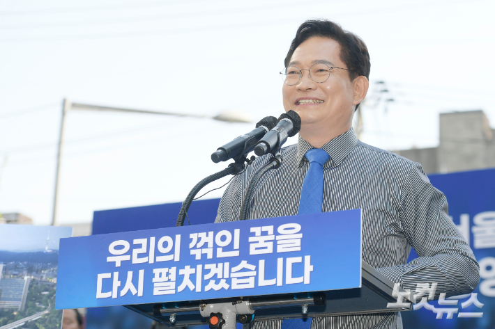 송영길 전 더불어민주당 대표가 17일 서울 마포구 홍대 상상마당 광장에서 6.1 지방선거 서울시장 출마를 선언 기자회견을 하고 있다. 국회사진취재