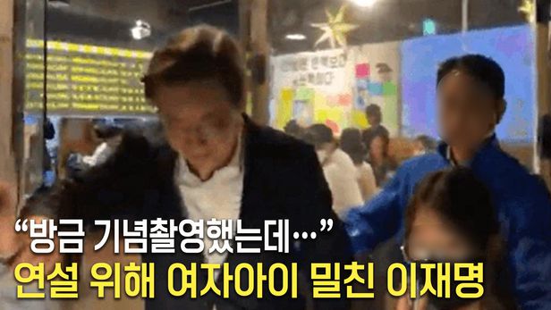 “방금 기념촬영했는데…” 연설 위해 여자아이 밀친 이재명