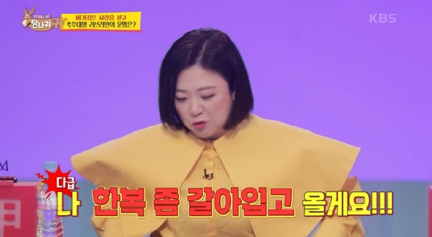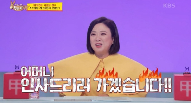 이를 모니터로 지켜본 김숙은 "어머니가 어떻게 알고 계시냐. 잠깐만 한복으로 갈아입고 오겠다"고 다급한 모습을 보여 웃음을 자아냈다.
