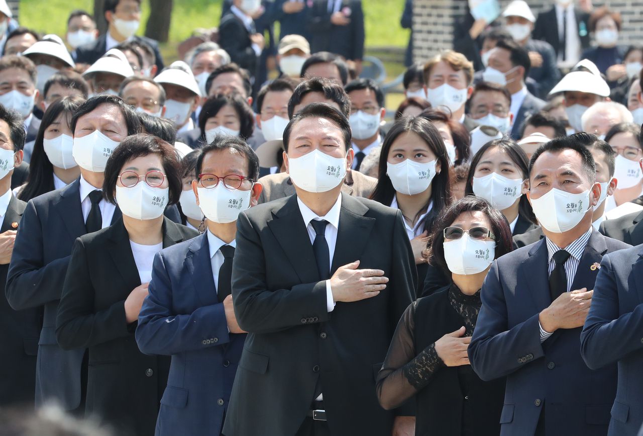 윤석열 대통령은 18일 광주 5·18국립민주묘지에서 열린 제42주년 5·18 민주화운동 기념식에 참석해 “자유민주주의를 피로써 지켜낸 오월의 정신이 바로 국민 통합의 주춧돌”이라며 “오월 정신을 확고히 지켜나갈 것”이라고 했다. 윤 대통령은 이날 대통령실과 정부 내각, 국민의힘 의원들을 이끌고 KTX편을 통해 광주로 갔다. 대통령 취임 후 첫 지방 일정이자 국가 기념식 참석이다.