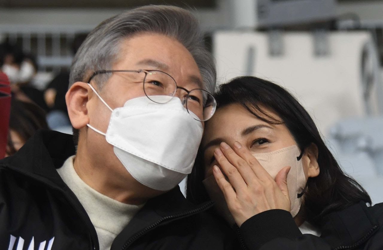 이재명 더불어민주당 대선후보와 부인 김혜경 씨가 지난해 11월 18일 서울 고척돔에서 열린 프로야구 한국시리즈 4차전을 관람하며 대화를 나누고 있다. 2021.11.18. /국회사진기자단
