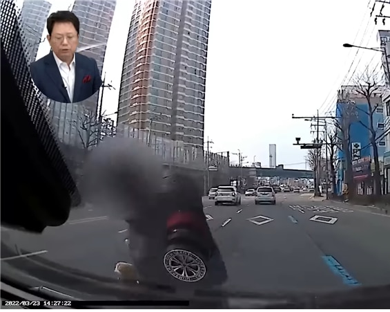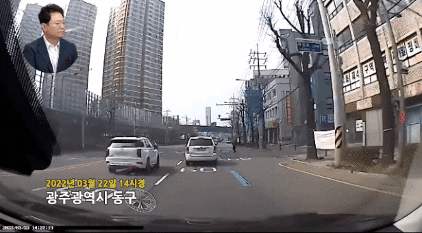 지난 3월22일 오후 2시쯤 광주 동구 학동의 한 도로에서 촬영된 블랙박스 영상. /유튜브 '한문철tv'
