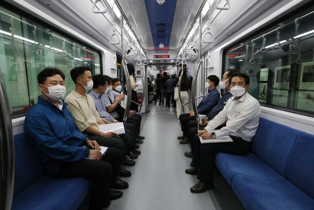 개통을 나흘 앞둔 24일 서울 동작구 차량기지에서 공개된 전동차의 모습. /연합뉴스