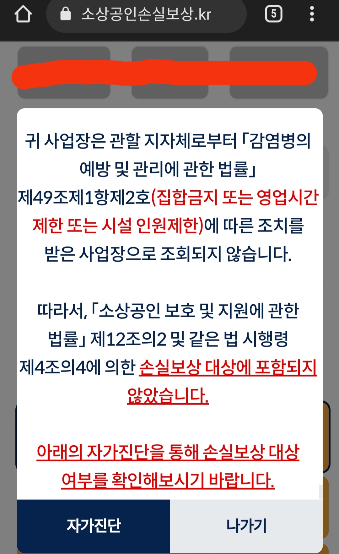귀하는 「소상공인 손실보전금」 신청 대상자입니다.