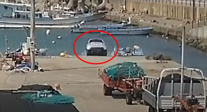 ◆ 손수호> 5월 3일 오후 2시 16분, 부산 기장군에 있는 동백항에서 벌어진 사건인데요. 영상이 있거든요. 당시 사고 장면 영상 보면서 이야기를 할 텐데요. 경차 한 대가, 스파크입니다. 부둣가에 정차 돼 있다가 지금 영상에 나오는 것처럼 서서히 움직이더니 바다에 빠진 거예요.