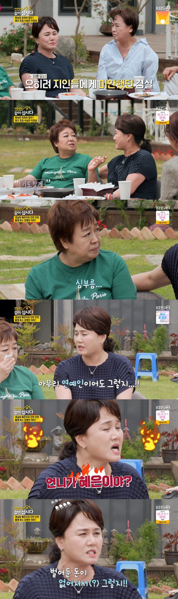 이경실 사우나서 친한 언니가 혜은이 욕, 발가벗고 싸워 박원숙의 같이 삽시다 호탕한 웃음소리 주인공 이경실 자매들 집 방문 개그맨 동료들 전화 돈 그날 모아져 정선희 집 지켜