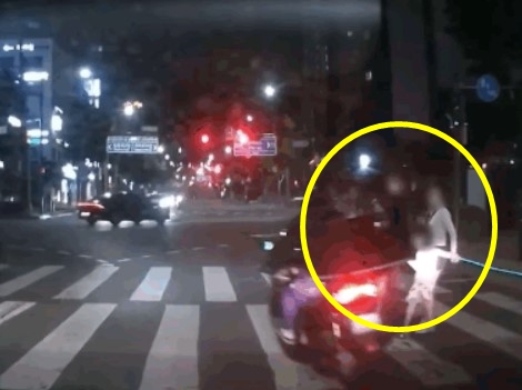 횡단보도를 건너던 가족이 보행 신호가 켜졌음에도 갑작스럽게 튀어나온 오토바이에 치일 뻔한 영상이 온라인에 공개됐다.
