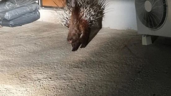 제주의 한 주택 앞마당에 산미치광이(호저)가 나타나 행정당국이 포획에 나섰다.