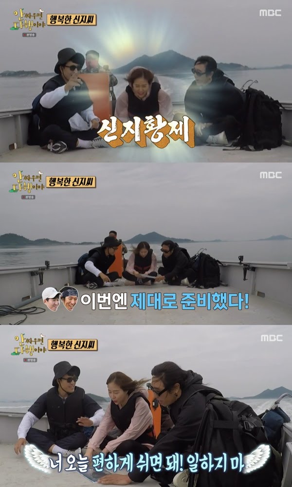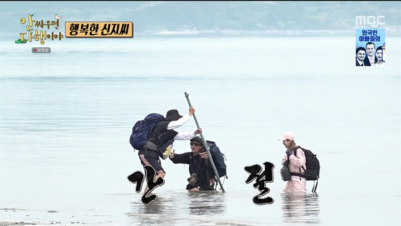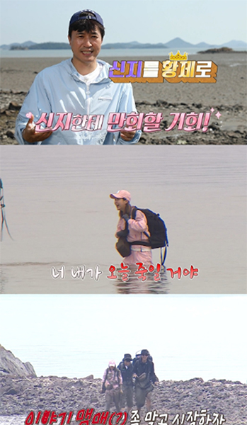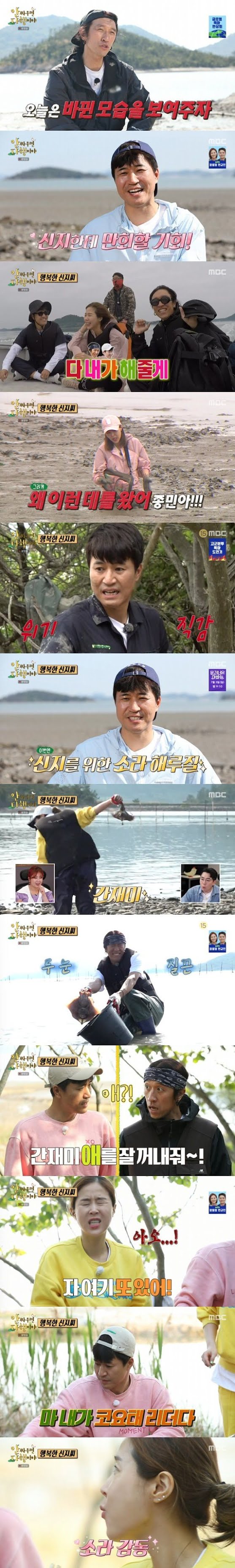 신지를 위해 김종민과 빽가가 소라 잡기에 도전했다. 김종민과 빽가는 신지를 가만히 있게 해주겠다는 호언장담과 달리 좀처럼 소라를 발견하지 못했고, 신지가 소라를 먼저 잡으며 활약했다. 더불어 신지는 간재미를 맨손으로 잡아 모두를 감탄하게 했다. 기세를 몰아 해산물을 무서워하던 빽가까지 간재미 잡기에 성공했다.
