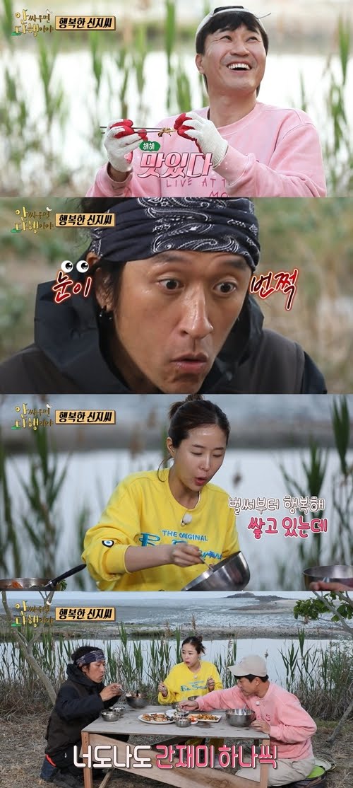 27일 오후 방송된 MBC 예능프로그램 '안싸우면 다행이야'(이하 '안다행')에서는 최장수 혼성그룹 코요태 김종민, 신지, 빽가가 또 한 번 무인도 '내손내잡(내 손으로 내가 잡는다)'에 나섰다. '빽토커'로 코요태 동생 그룹 타이푼 출신 솔비가 함께했다.