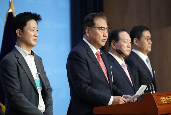 미래통합당 박진(왼쪽 둘째) 의원이 16일 오전 국회 소통관에서 해병대 마린온 사고 조사 및 후속 조치와 관련한 기자회견을 하고 있다.