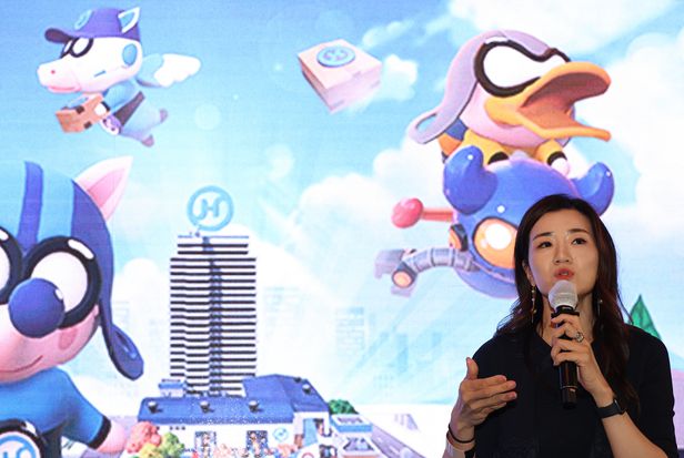 조현민 한진 미래성장전략 및 마케팅 총괄 사장이 28일 메타버스·엔터테인먼트 같은 신사업과 미래 전략에 대해 설명하고 있다. 2020년 9월 한진에 합류한 조 사장은 물류와 엔터테인먼트를 결합한 ‘로지테인먼트’라는 개념을 제시하며 신사업을 주도하고 있다. /연합뉴스