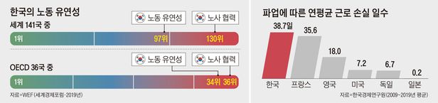 정권이 바뀐 것도 과격 투쟁과 무관치 않다는 분석도 나온다. 친노동 정책을 추진한 전 정권의 경우 5년 내내 노동계와 사실상 밀월 관계를 유지해왔다. 그러나 새 정부가 출범부터 노동 개혁을 하겠다고 나서자 노동계도 강경한 투쟁으로 맞서는 양상이다. 한 10대 그룹 노무 담당 임원은 “전 정부에서도 노조가 파업도 하고 투쟁도 했지만 최근 들어 투쟁 강도가 강해지고 있는 것은 사실”이라면서 “또한 파업·투쟁으로 일관하는 노동 방식을 탐탁지 않게 생각하는 MZ세대(1980년대~2000년대 초 출생) 노조원이 늘어나면서 기성세대 중심의 노조가 내부 단속을 위해 강력한 투쟁 방식을 동원하는 측면도 있다”고 말했다.