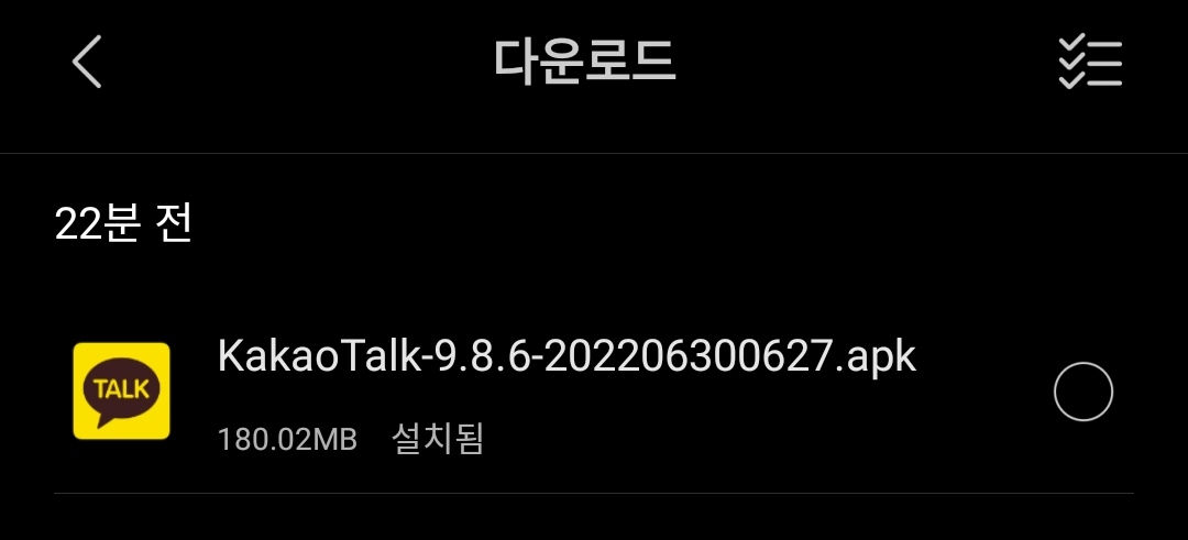안타깝지만 자동으로 설치되는 것이 아니라 '다운로드' 폴더로 이동해서 apk 파일을 선택해서 실행해야 하는 것이다.