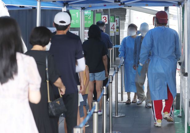 국내 신종코로나바이러스 감염증(코로나19) 신규 확진자가 7만6402명을 기록한 20일 서울 용산구보건소 선별진료소를 찾은 시민들이 검사 대기를 하고 있다. /뉴스1