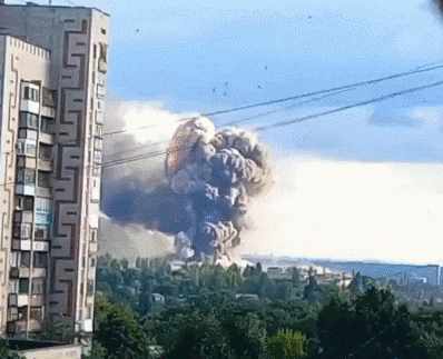 우크라이나 동부 도네츠크인민공화국(DPR) 고를로프카시에 있는 러시아 측 탄약고가 폭발하는 장면. /트위터