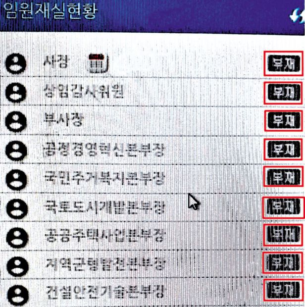사장부터 본부장 LH 주요간부 전원 금요일 오후 부재중 일부 목요일부터 자리 비워 내부 전산망 임원 사무실 체류 현황판 일제히 부재(不在) 알림 줄줄이 사무실 비우고 서울 경기 올라간 것