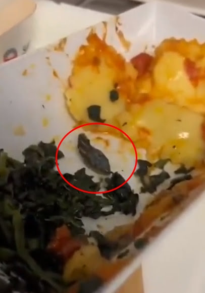 기내식 먹다 기겁, 절반 먹었는데 ‘뱀 머리’ 추정 물질이…