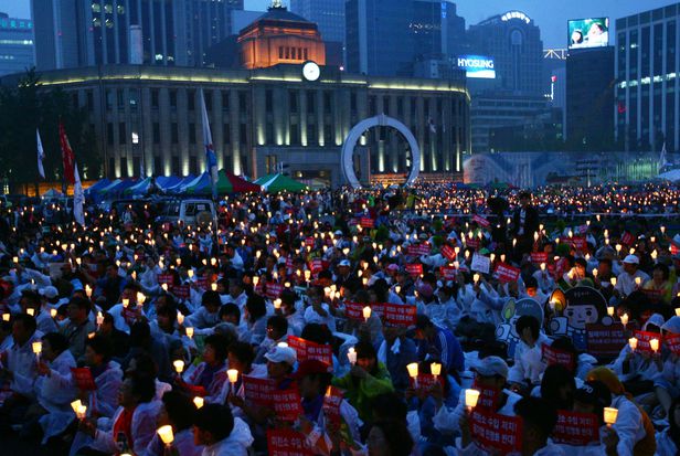 2008년 6월 8일 저녁 서울광장에서 광우병 위험 미국산 소고기 수입반대 집회가 열렸다. 참가자들의 자유발언이 이어지고 있다./이태경 기자