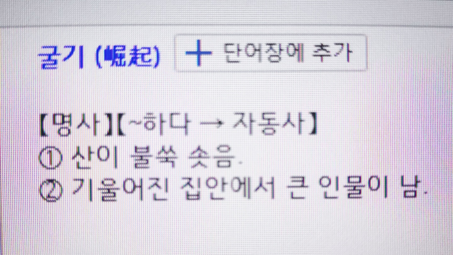 단어 뜻 알아보기 : 굴기 산이 불쑥 솟음 기울어진 집안에서 큰 인물이 남