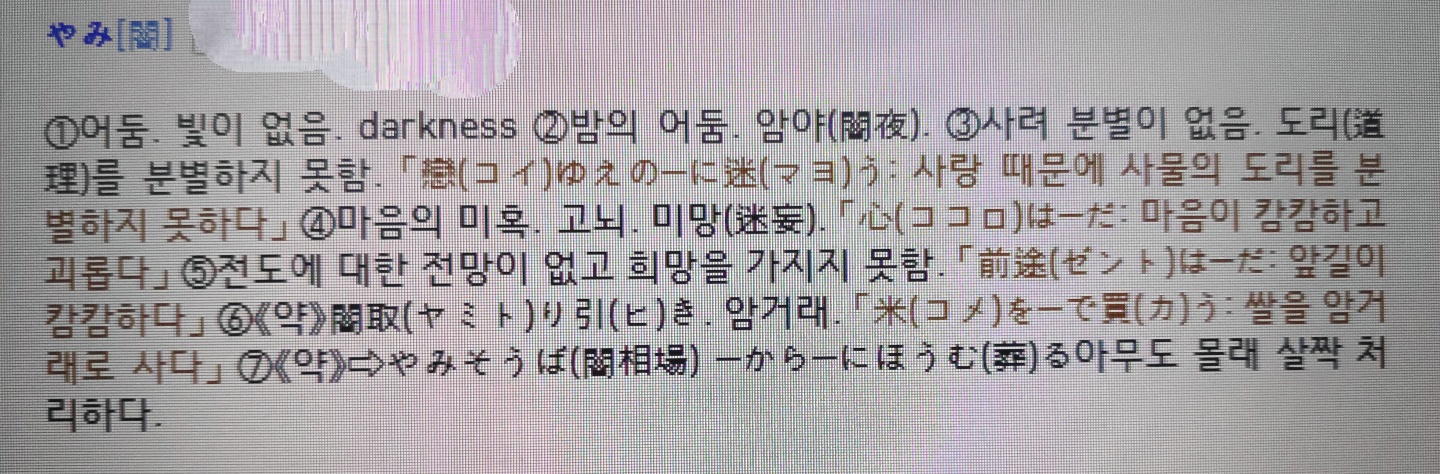 그래서 '야미'로 일본어를 찾으면 뭐를 오해하고 사용했는지를 대략 추측할 수 있다.