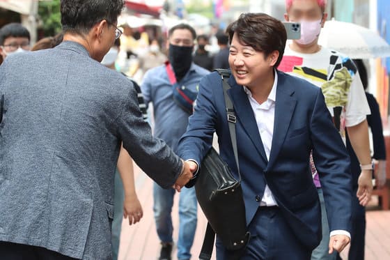 이준석 전 국민의힘 대표가 4일 오후 대구 중구 김광석길을 찾아 시민과 인사를 나누고 있다. 2022.9.4/뉴스1