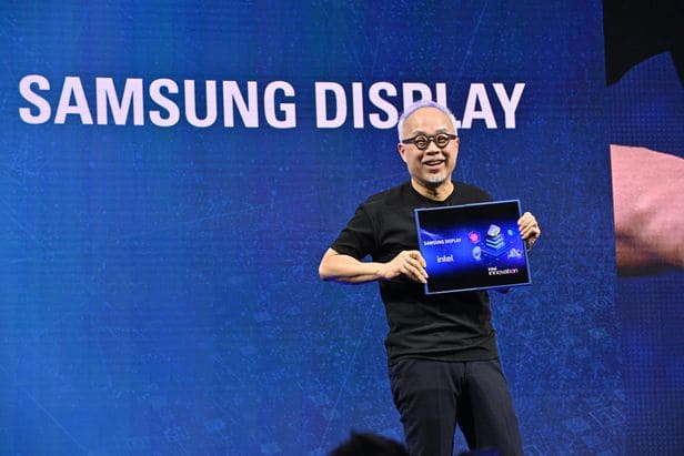 이날 인텔의 팻 겔싱어 CEO(최고경영자)가 사용자 경험을 극대화시키는 전략을 발표하며 “파트너를 소개하겠다”고 하자, 최주선 삼성디스플레이 사장이 무대에 등장했다. 검은색 티셔츠 차림인 최 사장의 손에는 태블릿 정도 크기의 디스플레이가 들려있었다.