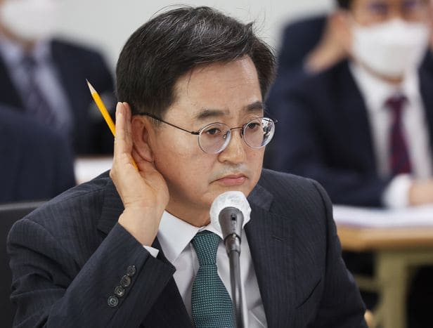 김동연 경기도지사가 18일 오전 경기도 수원시 영통구 경기도청에서 열린 국회 행정안전위원회의 경기도에 대한 국정감사에서 귀에 손을 대고 있다. /연합뉴스
