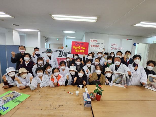 21일 전장연이 최재형 의원 지역사무실 앞에서 시위를 펼치자, 장애인거주시설이용자부모회 회원들은 맞불 집회 겸 최 의원 응원차 지역사무실을 방문했다. 최 의원의 보좌진들의 만류로 맞불 집회나 충돌은 없었다. 부모회는 실제 장애인 아이들을 가진 부모들의 모임이다. /독자 제공