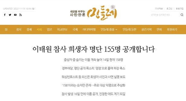 친야 인터넷 매체 ‘민들레’가 유족 동의 없이 이태원 참사 희생자 명단을 공개하자 유족을 비롯해 야권 성향 시민단체들까지 반발했다. 야권의 ‘재난의 정치화’를 두고 여론의 역풍도 거세다.
