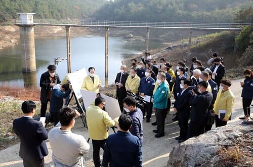 이 장관은 “올 겨울 강수량이 평년보다 적을 것으로 예상돼 생활·공업 용수 공급에 지장을 초래할 우려가 있다며 “가뭄 확산에 대비해 중앙과 지방의 유기적 협업으로 선제 조치를 해야 한다”고 했다. 이어 남부지역 주민들에게 “가뭄대책의 한 축은 물 수요관리”라며 “범시민 20% 물 절약 실천운동에 적극적으로 동참해달라”고 요청했다.
