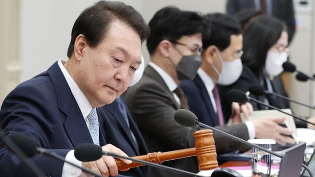 윤석열 대통령이 화물연대 집단 운송거부 사태 관련 업무개시명령을 심의하기 위해 29일 오전 서울 용산 대통령실 청사에서 열린 국무회의에 참석, 개회 선언을 하고 있다. /연합뉴스