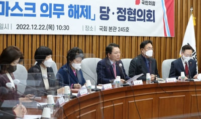 이어 “국민의힘은 자신감 있게 마스크를 벗어도 된다고 하는 전문가들 건의를 반영해 좀 더 과감히 신속하게 마스크 해제를 해줄 것과 하루라도 빨리 마스크를 벗어 던지고자 하는 국민의 희망에 부합해줄 것을 정부 측에 주문했다”고 밝혔다.