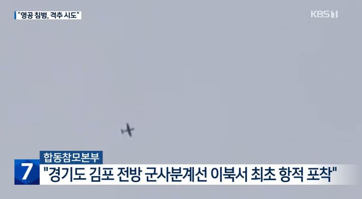 김포 상공에서 포착된 북한 무인항공기. KBS 화면 캡쳐.